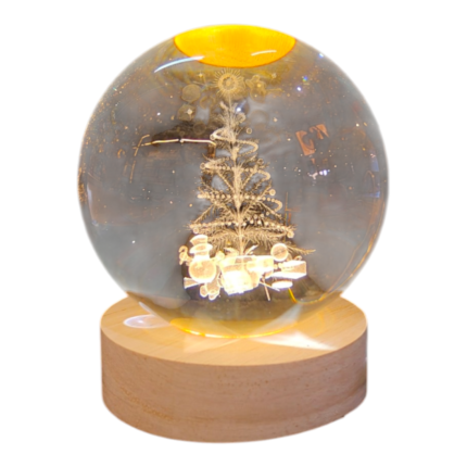 Φυσική Ξύλινη Βάση: Η βάση από μασίφ ξύλο διαθέτει ενσωματωμένο θερμό LED φωτισμό, που μετατρέπει τη σφαίρα σε ένα ατμοσφαιρικό φωτιστικό νυκτός.