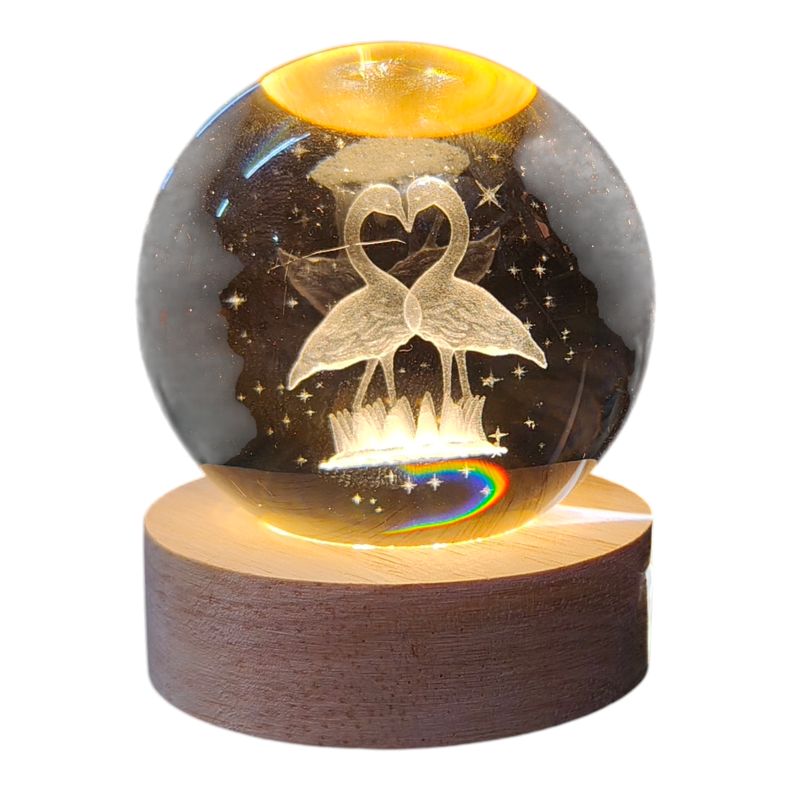 Δώστε μια εξωτική και ρομαντική νότα στον χώρο σας με αυτή την υπέροχη κρυστάλλια σφαίρα. Δύο κομψά φλαμίνγκο ενώνονται σχηματίζοντας μια καρδιά, περιτριγυρισμένα από αστέρια, δημιουργώντας ένα μαγευτικό τρισδιάστατο σκηνικό που κλέβει τις εντυπώσεις.
